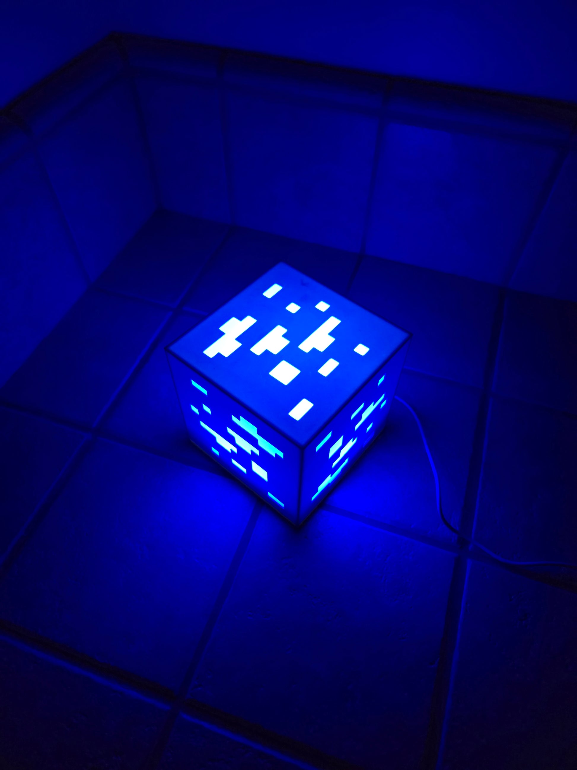 This Minecraft Ore Lamp boasts a unique 3D printed design, inspired by the beloved game. It's a creative and fun addition to any room. Its distinctive look makes it more than just a light source; it's a great piece of room decor. Impress any Minecraft enthusiast with this eye-catching lamp.